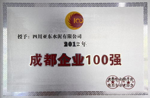 成都企业联合会评选出成都百强企业,于9月13日假天府国际金融中心隆重举行「2012成都企业100强发布会」,四川亚东水泥继去年获此殊荣后,今年再度获选,且综合排序位列第49位,较去年晋升3位。