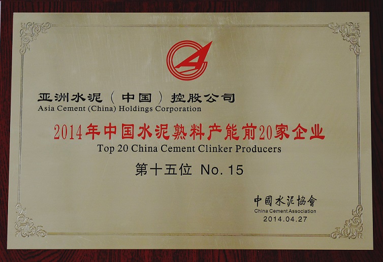 亚泥(中国)控股公司执行长吴中立4/26-27 应邀前往北京,参与中国水泥协会主办的2014年中国水泥协会理事会与2014年中国水泥国际峰会,同时代表亚泥(中国)领取由中国水泥协会正式统计认证后颁给的中国熟料水泥2013年产能前20强的铜牌一面。吴执行长从中国建材联合会荣誉会长,也是前任会长张人为先生的手中,获得这个荣耀,除了接受大会的祝贺和公开唱名外,也得到张人为、雷前治和现任会长乔龙德的握手致意!