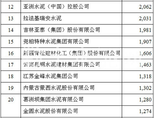 中国水泥协会公布2015年全国水泥熟料产能前50强企业排名